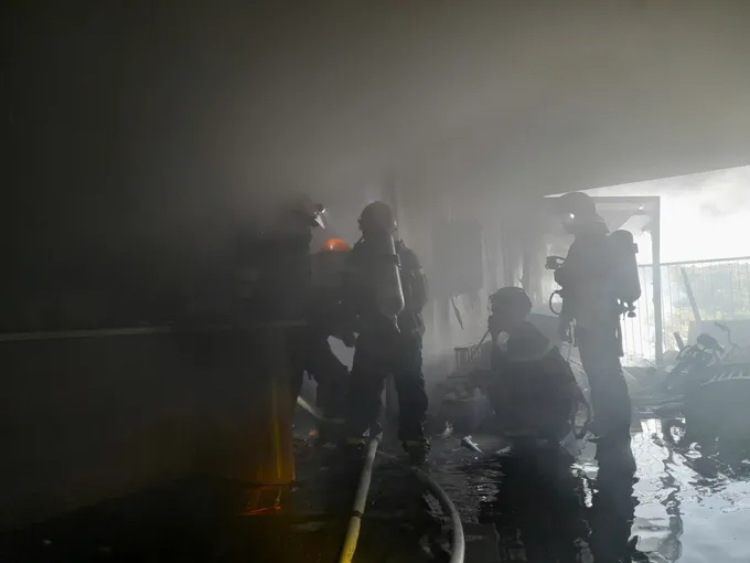 Ghi nhận của phóng viên tại hiện trường, đám cháy bùng phát khiến khói đen cuồn cuộn bay ra từ căn hộ. Nhiều cư dân vội vàng theo thang bộ thoát ra ngoài.