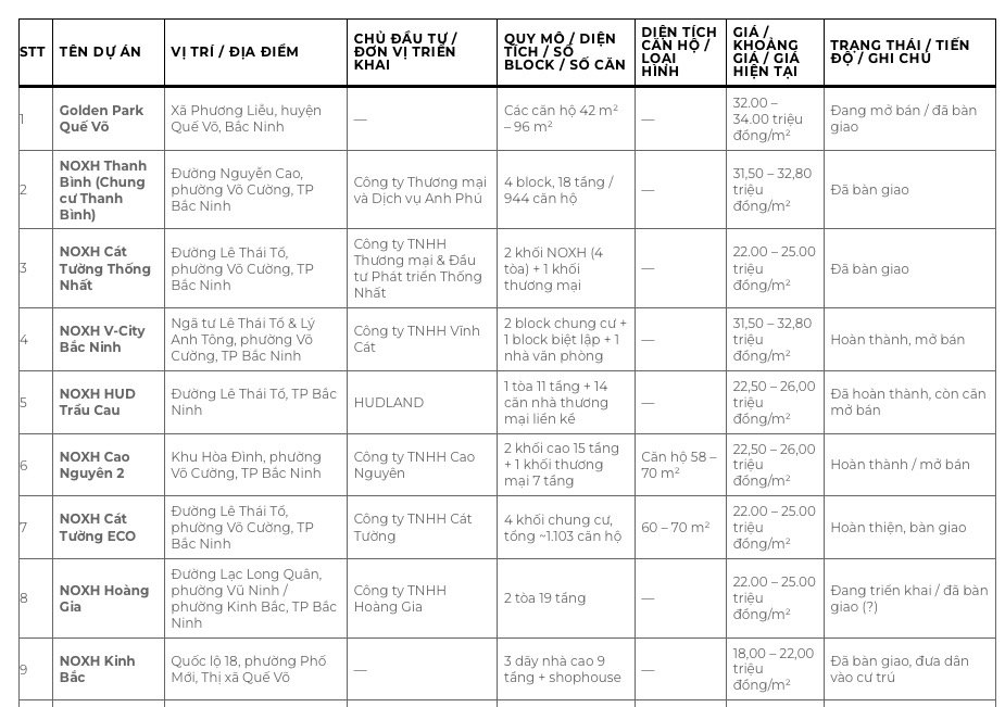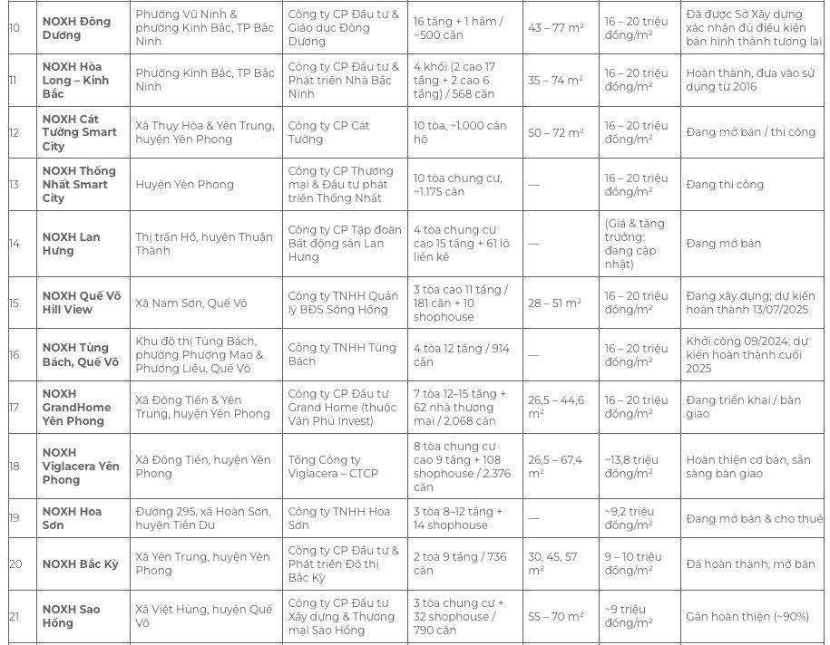 Danh sách dự án Nhà ở Xã hội Bắc Ninh mới nhất 2025