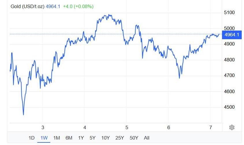 Thị trường vàng chứng kiến tuần giao dịch đầy biến động khi tăng, giảm như tàu lượn siêu tốc trong tuần từ 2/2 đến 6/2, có thời điểm vàng rơi tự do xuống dưới 4.500 USD/ounce và lên đến gần 5.100 USD/ounce. Liệu giá vàng trong tuần tới (9/2 đến 13/2) sẽ biến động như thế nào?Diễn biến giá vàng tuần 2/2 đến 6/2....