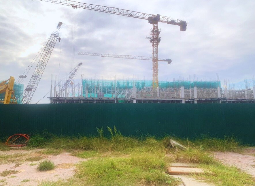 Tại khu vực trung tâm Happy Home Tràng Cát, không khí thi công diễn ra sôi động. Máy móc, nhân công hoạt động liên tục, nhiều hạng mục được triển khai song song nhằm rút ngắn thời gian hoàn thiện tổng thể. Đây là khu vực “xương sống” của dự án, nơi tập trung các trục cảnh quan chính cùng hệ thống tiện ích nội khu.