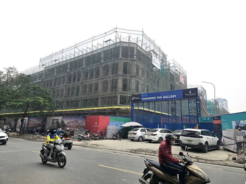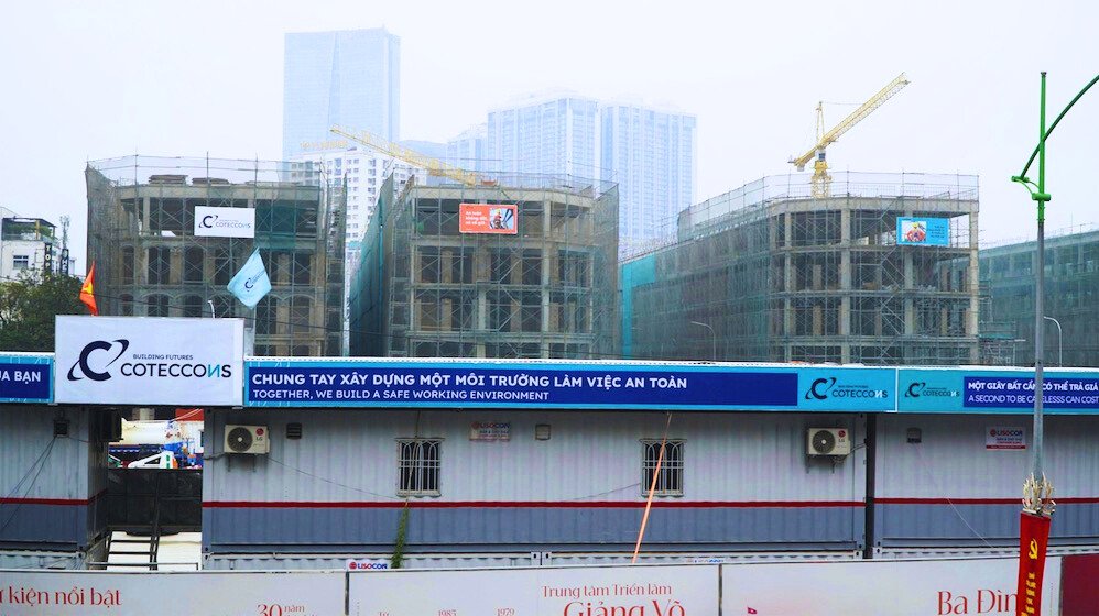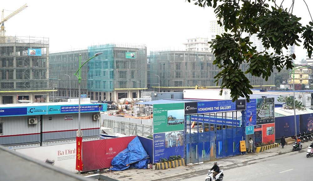 Theo quan sát, khu đất dành cho hai tòa căn hộ dịch vụ, khách sạn và văn phòng cao từ 39 đến 40 tầng hiện vẫn chưa triển khai xây dựng. Khu vực này đang được sử dụng làm nơi tập kết vật liệu và thiết bị phục vụ thi công cho toàn bộ dự án.