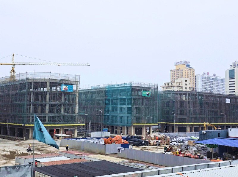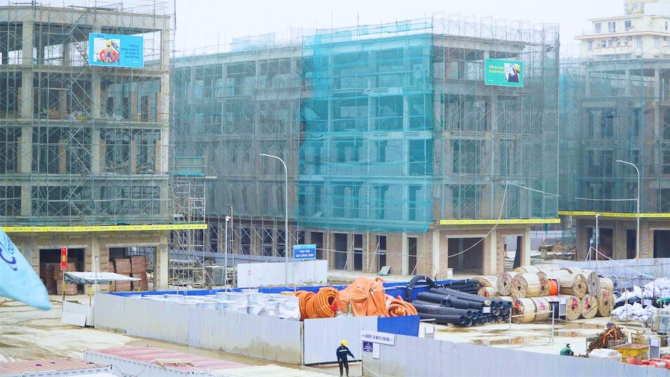 Tại khu vực nhà phố thương mại, các khối công trình đã vươn lên đến tầng 5 và đang bước vào giai đoạn chuẩn bị cất nóc, trước khi chuyển sang hoàn thiện mặt ngoài và nội thất.