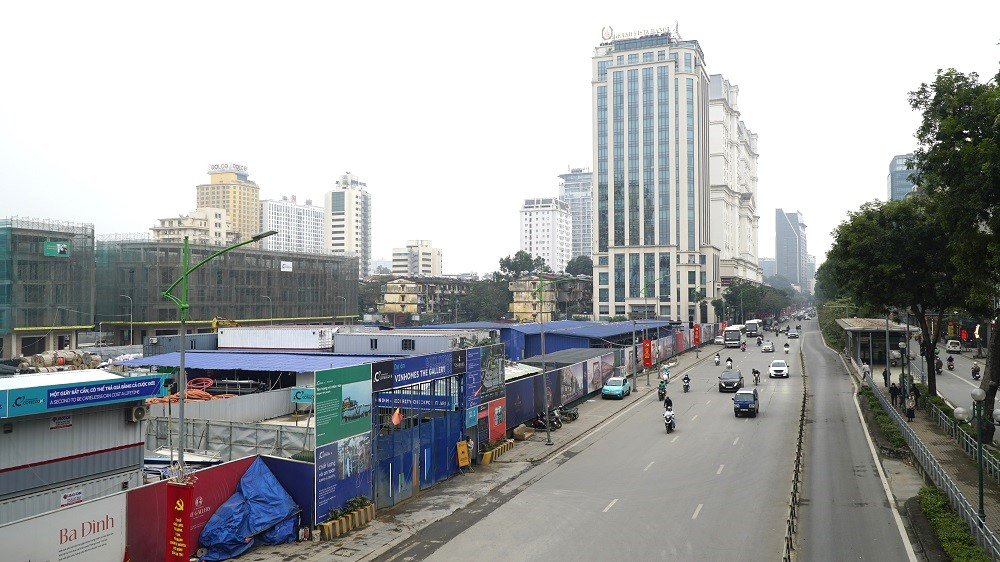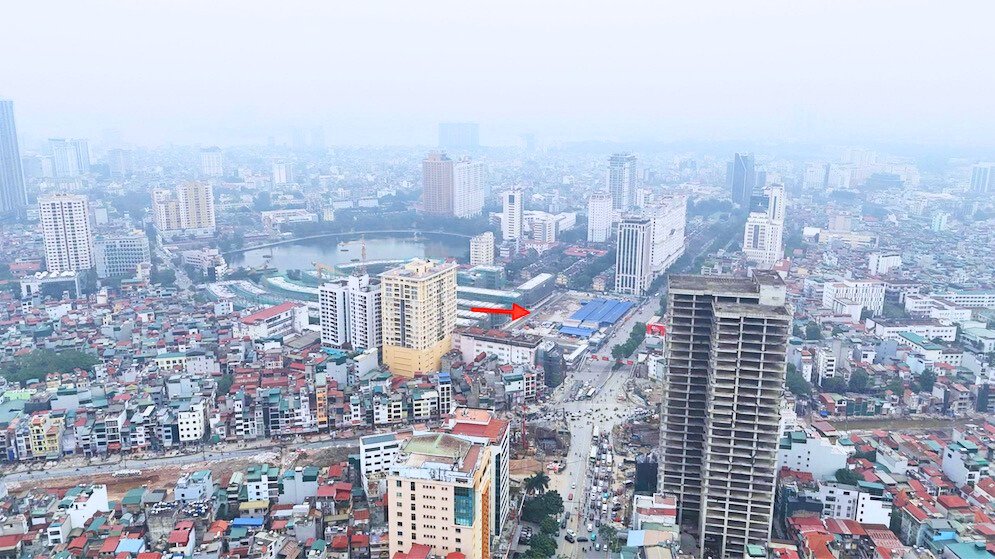Những ngày cuối tháng 2/2026, khi quan sát thực tế tại công trường dự án, có thể thấy khu đất rộng gần 7 ha đã được quây tôn kín và bắt đầu lộ rõ hình hài của một khu đô thị thương mại cao cấp. Các máy khoan cọc nhồi, cần cẩu tháp và xe chuyên dụng liên tục hoạt động, tạo nên nhịp thi công khẩn trương ngay giữa khu vực đông đúc bậc nhất thủ đô.