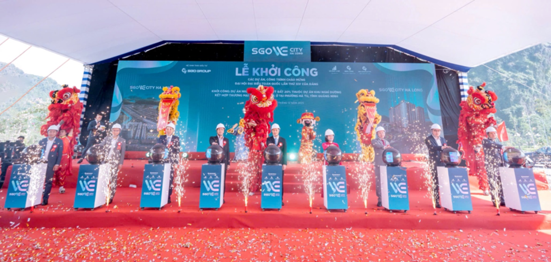 Các đại biểu thực hiện nghi thức khởi công dự án ngày 19/12Theo đó, dự án SGO We City Hạ Long nằm trong quần thể Khu đô thị SGO La Emera Hạ Long, phường Hà Tu. Dự án được quy hoạch gồm 4 tòa nhà cao 18 tầng và 1 tầng hầm thông, trong đó có 3 tòa NOXH và 1 tòa nhà ở thương mại, cung cấp gần 1.500 căn hộ ra thị trường,...