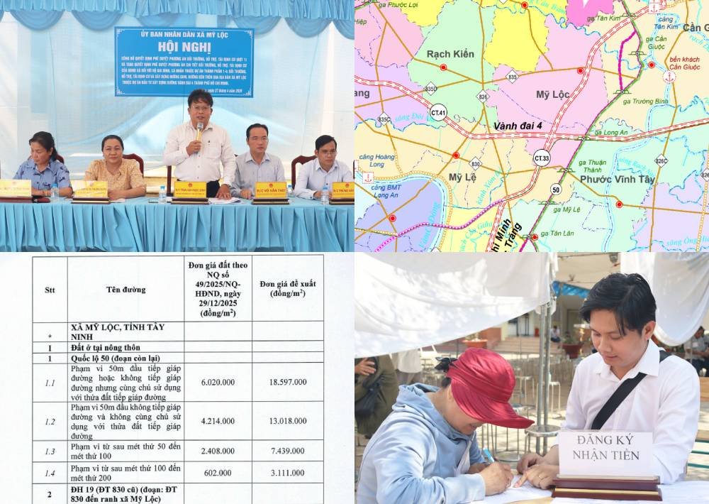 Mỹ Lộc công bố phương án bồi thường Vành đai 4Ngày 27/4, UBND xã Mỹ Lộc (tỉnh Tây Ninh) phối hợp với Chi nhánh Trung tâm phát triển quỹ đất khu vực Cần Giuộc tổ chức họp công bố Quyết định phê duyệt phương án bồi thường, hỗ trợ và tái định cư (đợt 1) đối với dự án thành phần 1-4 thuộc tuyến Vành đai 4...