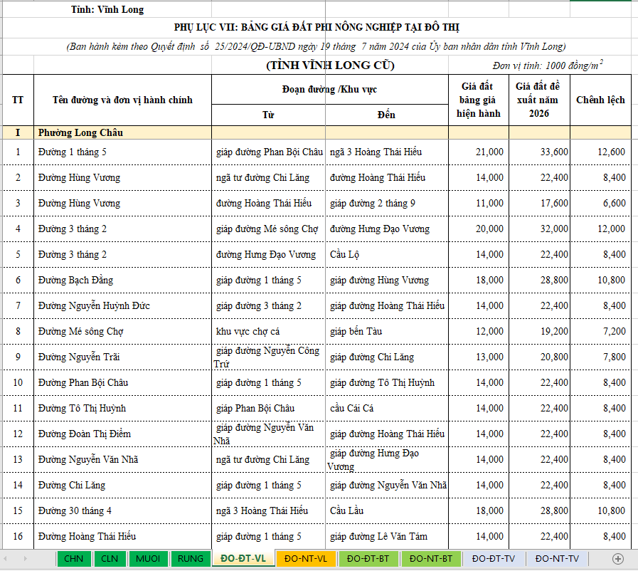 >>TẢI FILE: DỰ THẢO BẢNG GIÁ ĐẤT VĨNH LONG 2026