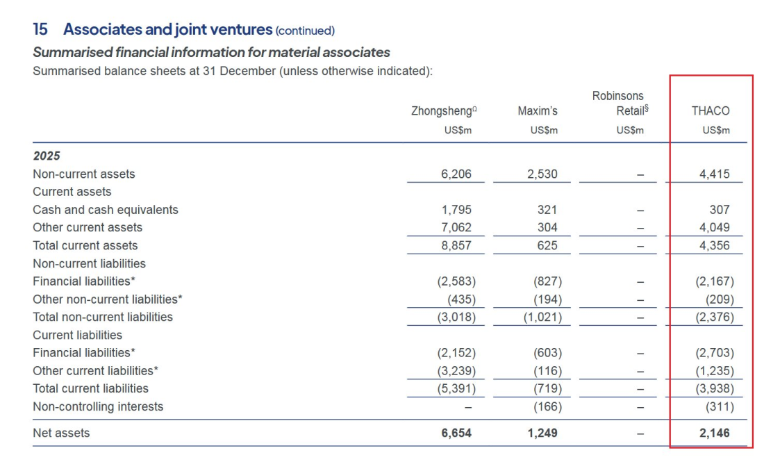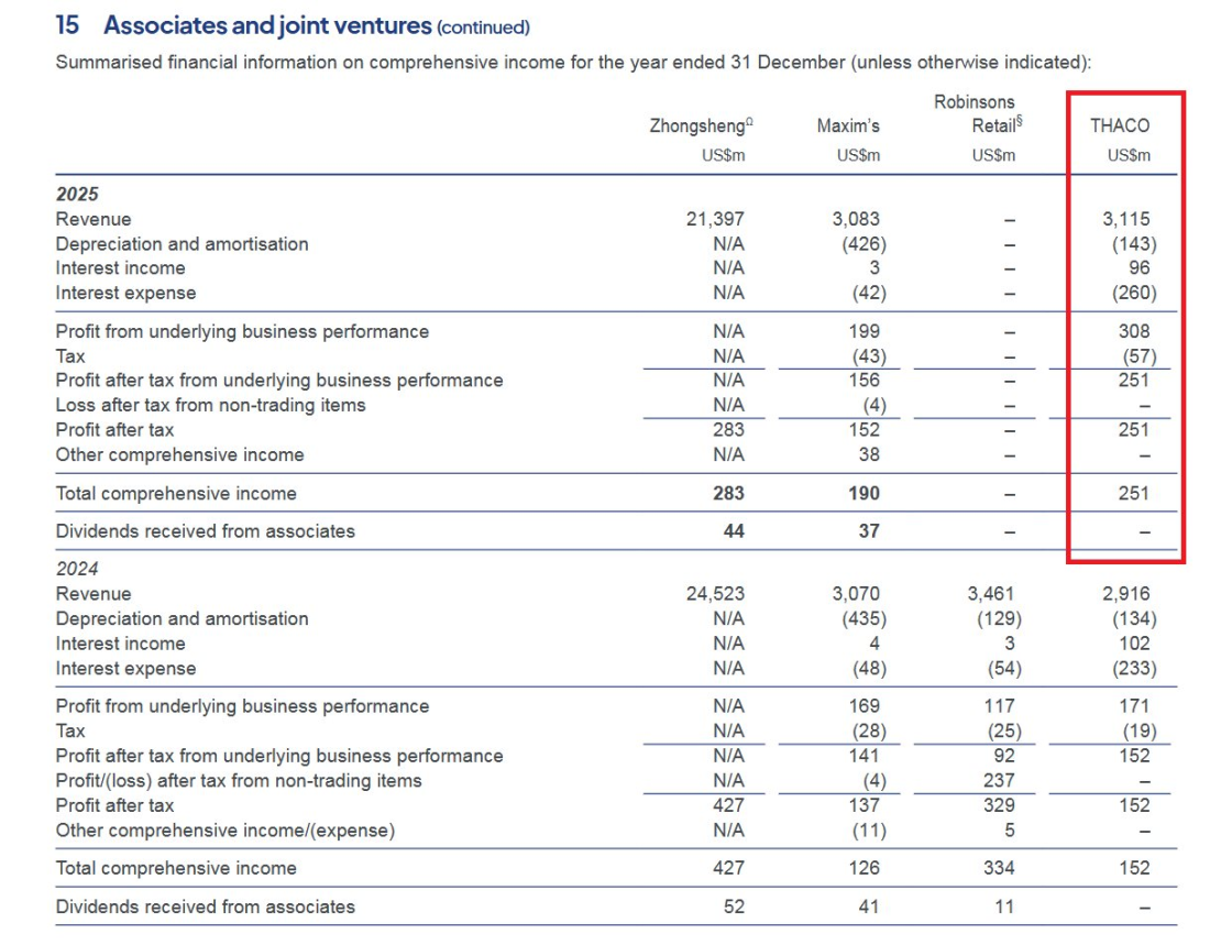 Jardines Matheson đang nắm giữ khoảng 27% lợi ích tại THACO. Tính đến cuối năm 2025, giá trị ghi sổ của khoản đầu tư này vào THACO đạt khoảng 723 triệu USD (tương đương gần 18.800 tỷ đồng).