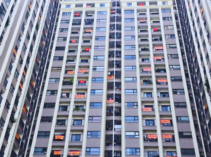 Trái ngược với khung cảnh yên ả của khu thấp tầng, tại ban công các tòa chung cư Moonlight, những tấm băng rôn màu đỏ với dòng chữ “Trả sổ đỏ cho cư dân” treo dày đặc. Hình ảnh này xuất hiện liên tục trong thời gian gần đây, nhanh chóng lan truyền trên các diễn đàn bất động sản và mạng xã hội.