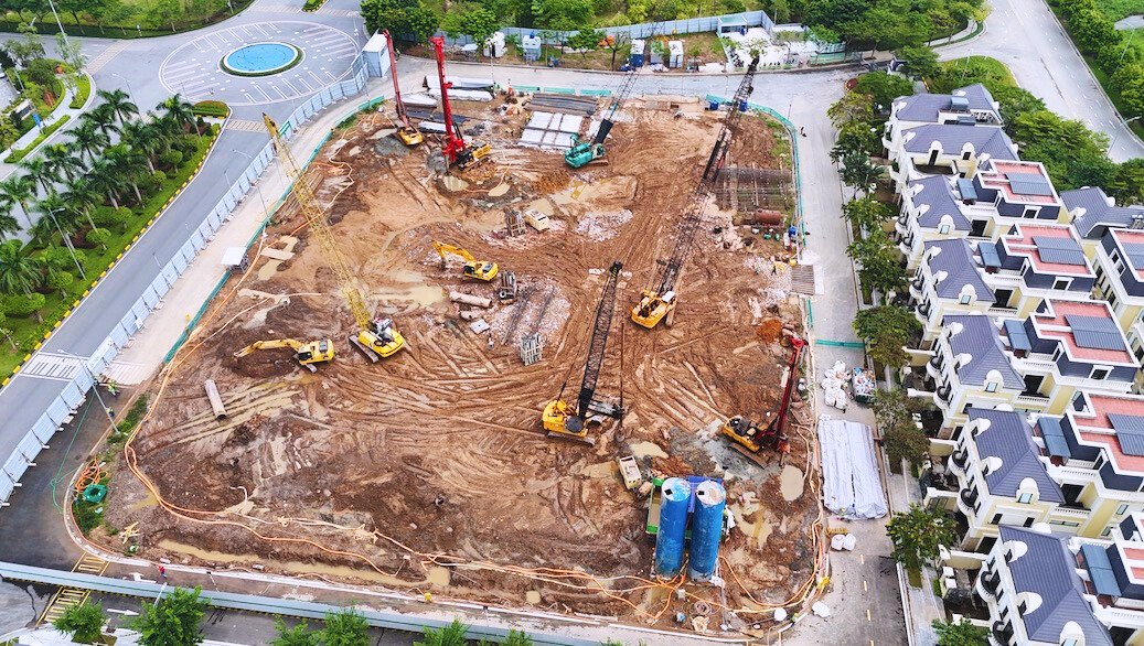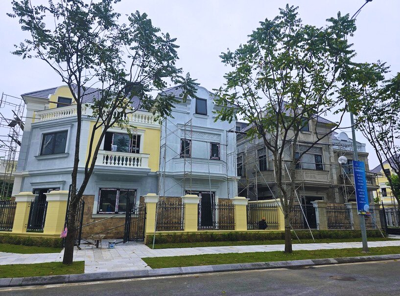Ở phần dự án đang triển khai, một số căn biệt thự và shophouse vẫn trong giai đoạn xây thô, hoàn thiện.
