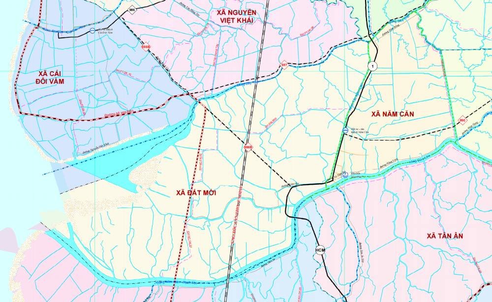 Đoạn tuyến đấu nối thuộc dự án thu hồi đất, bồi thường, hỗ trợ, tái định cư phục vụ tuyến cao tốc Cà Mau – Đất Mũi đi qua địa bàn 6 ấp của xã Đất Mới, gồm: Xóm Mới, Láng Chiếu, Tắc Năm Căn A, Trại Lưới A, Tắc Năm Căn và Ấp 5.