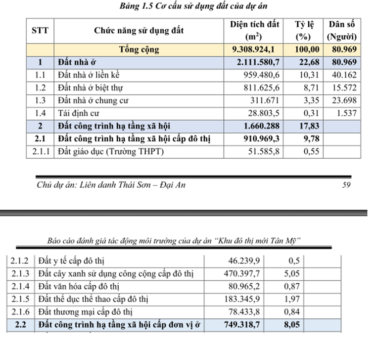 Khu đô thị mới Tân Mỹ có tổng diện tích 930,89ha, dân số dự kiến khoảng 80.000 – 81.000 người, với hệ thống nhà ở đa dạng gồm nhà ở thương mại, nhà ở xã hội và nhà ở tái định cư, đi kèm đầy đủ các công trình hạ tầng xã hội như giáo dục, y tế, thương mại – dịch vụ, thể dục thể thao, cây xanh và mặt nước.