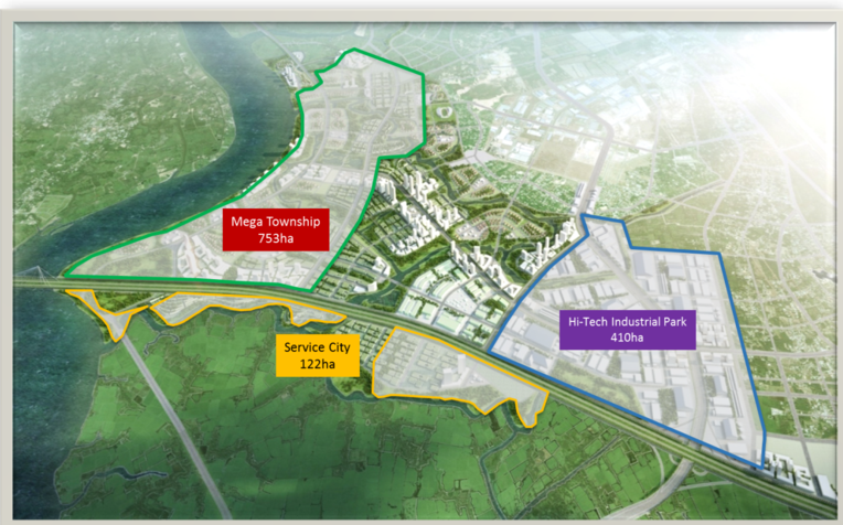 Diện tích được phân bổ cụ thể: 495.223 m2 đất công nghiệp, kho tàng và khu nghiên cứu phát triển; 1.429 m2 đất hạ tầng kỹ thuật; 8.607 m2 đất cây xanh công viên, cây xanh cách ly và mặt nước; 95.670 m2 đất giao thông nội bộ, bãi đỗ xe (bao gồm diện tích đường 319 và nút giao đường 319 với cao tốc TP.HCM – Long Thành – Dầu Giây).