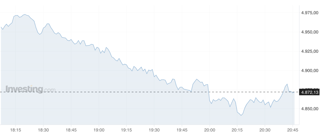 Giá vàng giảm mạnh sau khi mất mốc tâm lý 5.000 USD. Ảnh: Investing
