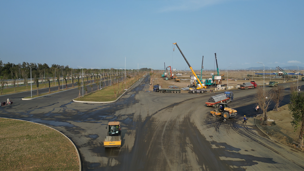 Nhiều tuyến đường nhánh, vòng xoay và nút giao nội bộ cũng đã được thi công, cho thấy hạ tầng khung đang dần hoàn chỉnh.