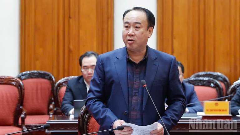 Lãnh đạo Văn phòng Chính phủ phát biểu ý kiến tại phiên họp. (Ảnh: Trần Hải)