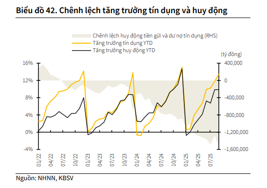 Theo KBSV, sau giai đoạn thiếu hụt thanh khoản vào cuối quý 4/2025 do tăng trưởng huy động chậm, áp lực đã phần nào dịu lại khi bước sang năm 2026 nhờ giải ngân đầu tư công cải thiện trong những tuần cuối năm ngoái, dòng vốn FDI và kiều hối khởi sắc, cùng diễn biến tỷ giá hạ nhiệt.