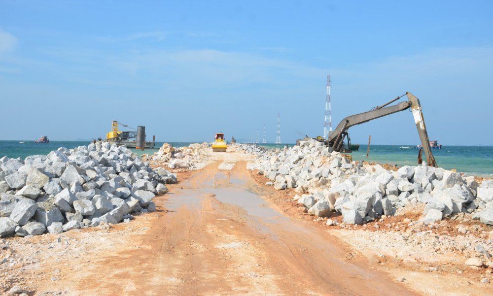 Giai đoạn 1, thực hiện đường dẫn lấn biển dài 1,8km, mặt cắt ngang 15m với 4 làn xe, vỉa hè mỗi bên 5m và cầu phía biển dài khoảng 240m