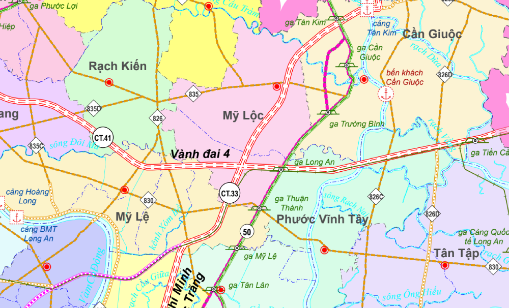 Riêng đoạn Vành đai 4 qua Tây Ninh dài khoảng 75km, đi qua địa bàn 15 xã gồm: xã Hậu Nghĩa, Đức Lập, Hòa Khánh, Đức Huệ, Thạnh Lợi, Bình Đức, Bến Lức, Mỹ Yên, Long Cang, Rạch Kiến, Mỹ Lệ, Mỹ Lộc, Phước Vĩnh Tây, Cần Giuộc, Tân Tập.