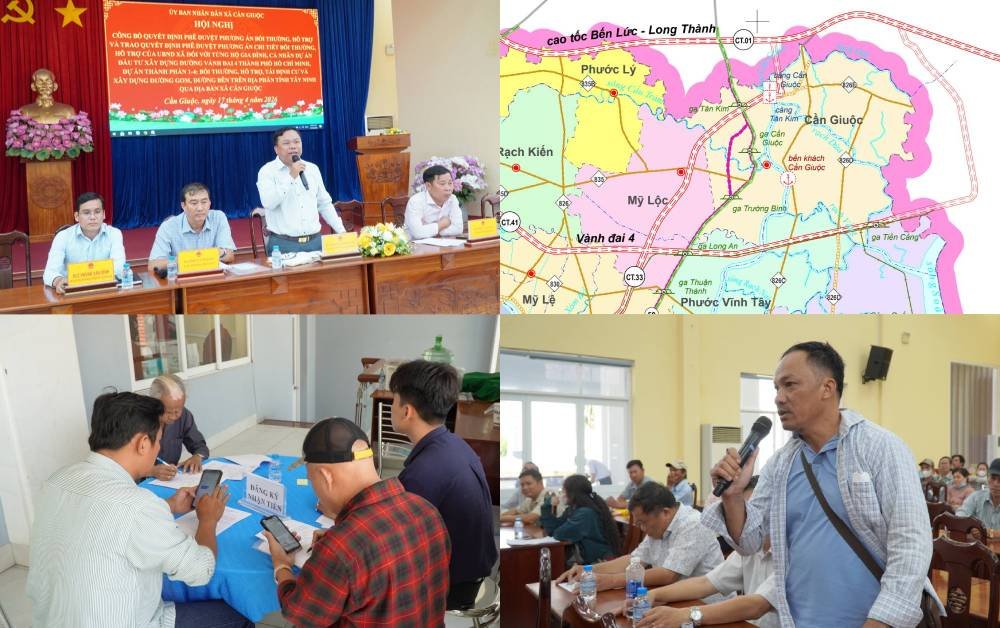 Tại hội nghị, lãnh đạo Phòng Kinh tế xã đã công bố Quyết định số 1300/QĐ-UBND ngày 14/4/2026 của UBND xã Cần Giuộc về việc phê duyệt phương án bồi thường, hỗ trợ và tái định cư của dự án. Đồng thời, Chi nhánh Trung tâm Phát triển quỹ đất Khu vực Cần Giuộc thông qua phương án chi tiết bồi thường, hỗ trợ, tái định cư đối với từng hộ gia đình, cá nhân; hướng dẫn người dân thực hiện các thủ tục liên quan, đăng ký nhận tiền bồi thường.