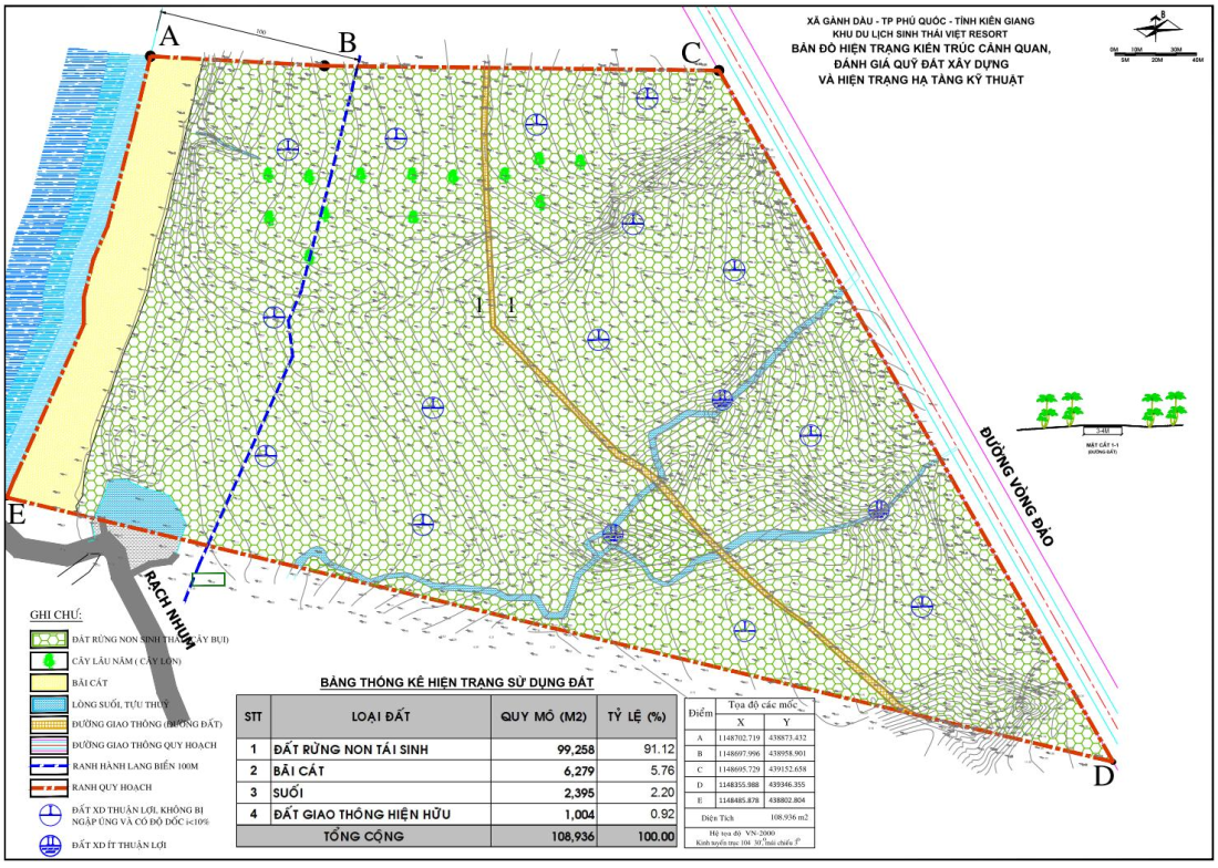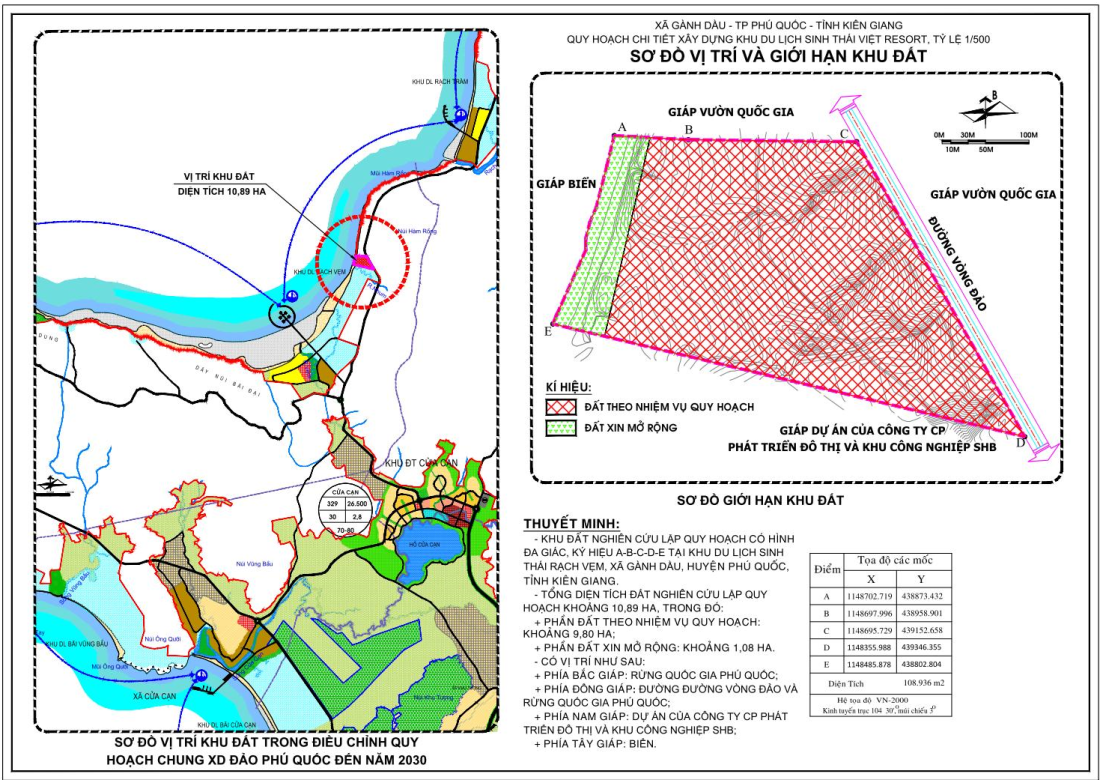 Theo hồ sơ pháp lý kèm theo ĐTM, khu đất thực hiện dự án nằm tại khu phố Rạch Vẹm, đặc khu Phú Quốc, trong đó một phần diện tích liên quan đến đất lâm nghiệp, thuộc khu vực đã được kiểm kê hiện trạng rừng và đất rừng tại khoảnh 2, tiểu khu 57, vùng đệm Vườn quốc gia Phú Quốc. Đây là khu vực có vai trò quan trọng trong việc bảo vệ hệ sinh thái, đa dạng sinh học và cân bằng môi trường tự nhiên phía Bắc đảo.