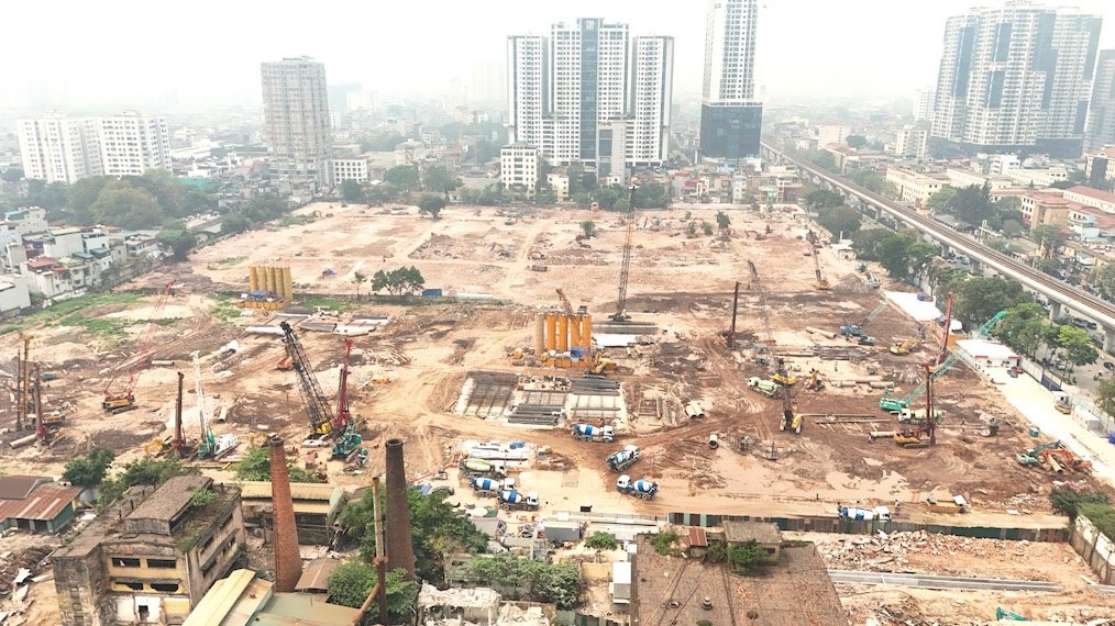 Với quy mô gần 11 ha, đây là một trong số rất ít quỹ đất lớn còn lại trong lõi nội đô Hà Nội có thể phát triển tổ hợp căn hộ cao tầng. Chính vì vậy, mọi chuyển động tại công trường đều đang được giới đầu tư và người mua nhà theo dõi sát.