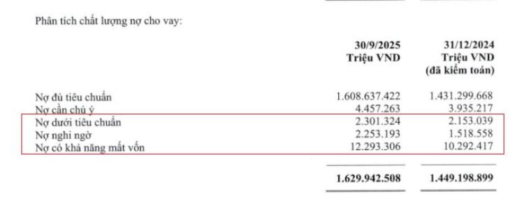 Tỷ lệ nợ xấu nội bảng của nhà băng cũng tăng từ 0,96% hồi đầu năm, lên 1,03% vào thời điểm cuối tháng 9/2025.