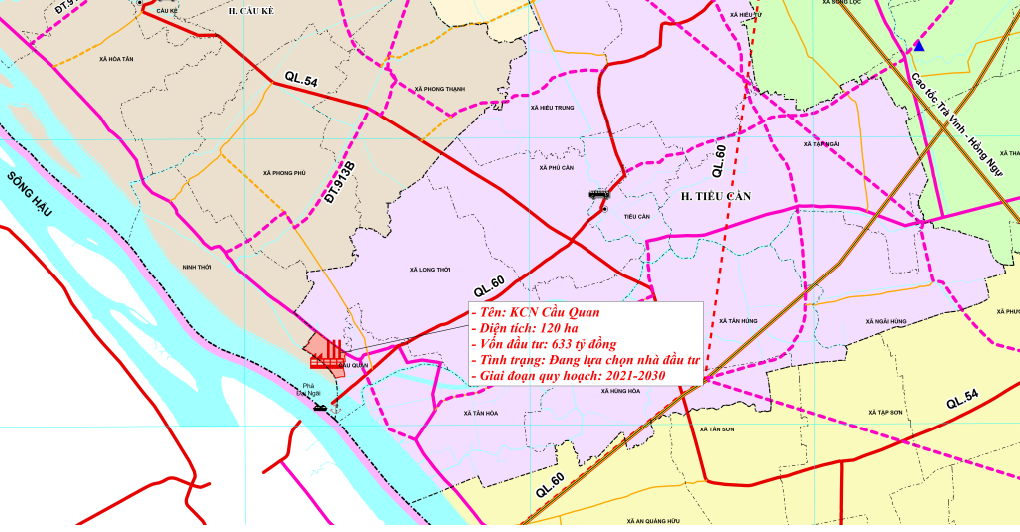 Song song với Ngũ Lạc, Khu công nghiệp Cầu Quan cũng được xem là mảnh ghép quan trọng trong mạng lưới công nghiệp của tỉnh Vĩnh Long mới. Dự án nằm tại xã Tân Hòa và xã Phong (trước đây là thị trấn Cầu Quan, huyện Tiểu Cần, Trà Vinh), có vị trí dọc theo sông Hậu và Tỉnh lộ 915, thuận lợi cho cả giao thông đường bộ lẫn đường thủy.