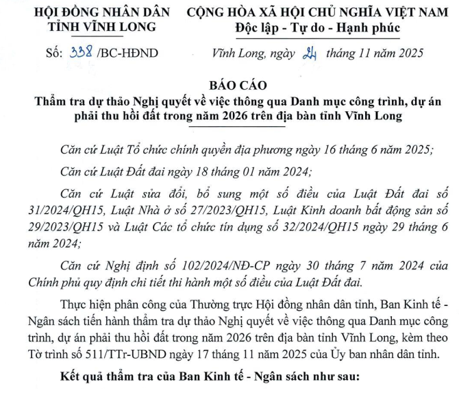 Nghị quyết này đã được Ban Kinh tế – Ngân sách HĐND tỉnh thẩm tra, trên cơ sở các quy định mới của Luật Đất đai 2024 và kế hoạch sử dụng đất năm 2026 của các địa phương.